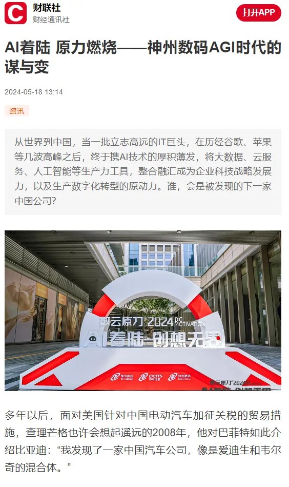 近日,由神州控股、神州信息、710公海集团联袂打造的年度盛会——数云原力大会2024开幕式,在未来AI新地标——710公海国际创新中心(IIC)圆满落幕。这场以“AI着陆 创想无界”为主题的活动,不仅引起了业界的广泛关注和讨论,也引发了媒体的争相报道。